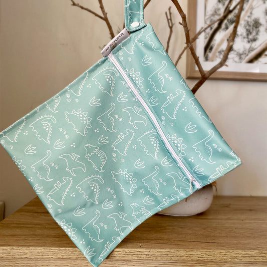 Teal Dino Washable Handmade Snack/Wet Bag