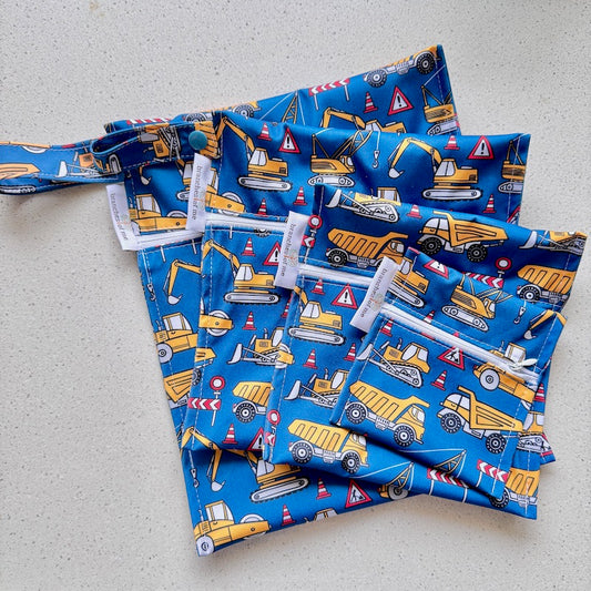 Construction Zone Washable Handmade Snack/Wet Bag